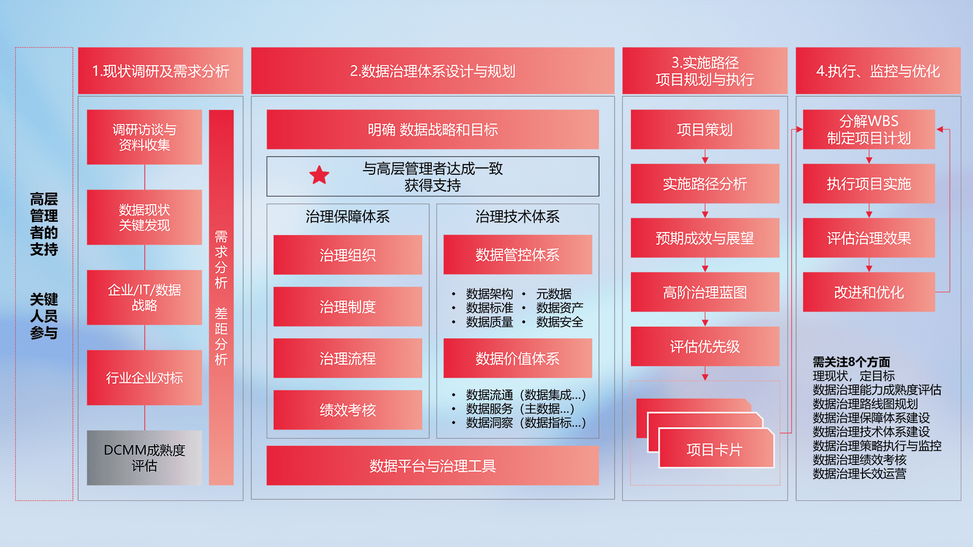 制定并执行统一的数据标准,,,规范数据定义和格式,,,,消除冗余和不一致性,,,实现跨部门和跨系统的数据一致性,,为企业提供标准化的数据基础。。。。